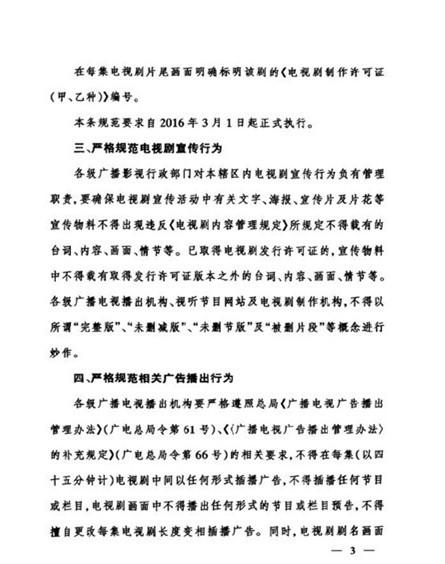近日廣電總局出了一份關(guān)于進(jìn)一步規(guī)范電視劇及相關(guān)廣告播出管理的通知 近日廣電總局出了一份關(guān)于進(jìn)一步規(guī)范電視劇及相關(guān)廣告播出管理的通知 近日廣電總局出了一份關(guān)于進(jìn)一步規(guī)