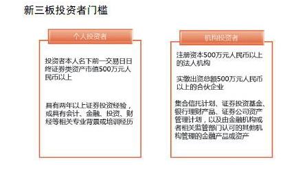上周五,新三板分層了,但由于大多數(shù)投資者根本參與不了,所以也不關(guān)注,反而很多人在問(wèn),這個(gè)分層之后,對(duì)于A股到底影響幾何?其實(shí)分層之后有一大殺招沒(méi)出,一旦這個(gè)殺招出了,A股將重啟暴跌模式。 先說(shuō)新三板的這次分層,畫(huà)了三道門(mén)檻, 1、最近兩年連續(xù)盈利,且年平均凈利潤(rùn)不少于2000萬(wàn)元(以扣除非經(jīng)常性損益前后孰低者為計(jì)算依據(jù));最近兩年加權(quán)平均凈資產(chǎn)收益率平均不低于10%(以扣除非經(jīng)常性損益前后孰低者為計(jì)算依據(jù))。 2、最近兩年?duì)I業(yè)收入連續(xù)增長(zhǎng),且年均復(fù)合增長(zhǎng)率不低于50%;最近兩年?duì)I業(yè)收入平均不低于4000萬(wàn)元;股本不少于2000萬(wàn)股。 3、最近有成交的60個(gè)做市轉(zhuǎn)讓日的平均市值不少于6億元;最近一年年末股東權(quán)益不少于5000萬(wàn)元;做市商家數(shù)不少于6家;合格投資者不少于50人。