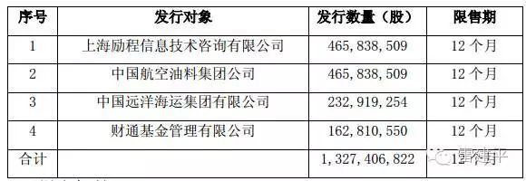 上海勵(lì)程信息技術(shù)咨詢有限公司(簡稱上海勵(lì)程)、中國航空油料集團(tuán)公司分別認(rèn)購465,838,509股,認(rèn)購金額30億元,上海勵(lì)程為攜程旗下控股公司。