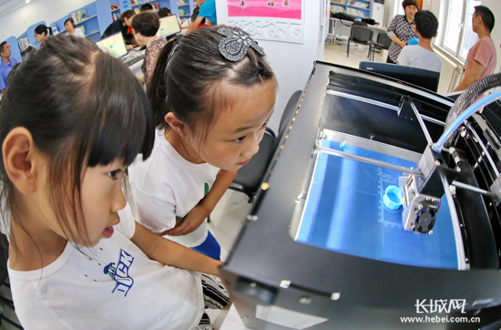 ![]() 在水一方社區(qū)小朋友觀看3D打印機(jī)制作模型。通訊員 供圖