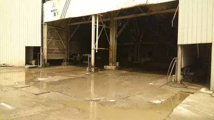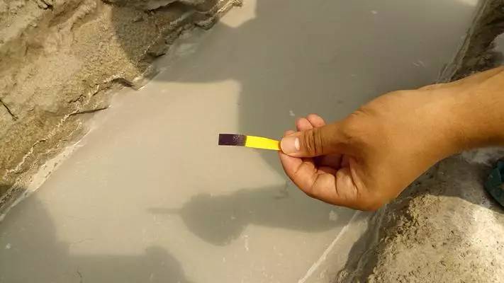 上海長久混凝土制品有限公司入口 工廠內(nèi)強堿污水橫流 6月14日9時,解放日報•上觀新聞記者跟隨上海市環(huán)境監(jiān)察總隊和崇明區(qū)環(huán)境監(jiān)察支隊的執(zhí)法人員,驅車沿著長興島內(nèi)的潘園公路往西,直到創(chuàng)建港水閘東側,這里有一條小路向南延伸,前往上海長久混凝土制品有限公司。 現(xiàn)場的污染情況觸目驚心,進入該公司后,一眼便能看到滿地橫流的灰色污水,借著地勢,從污水的源頭——水泥落料車間,一路蔓延到該廠東側圍墻的一個洞口。對污水酸堿度的快速檢測結果更令人震驚,執(zhí)法人員剛把pH試紙的一頭伸入污水,試紙顏色便迅速變深,呈現(xiàn)出紫色。