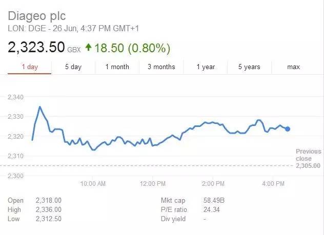 ▲帝亞吉歐股價 截至英國當?shù)貢r間6月26日,帝亞吉歐在倫敦證券交易所收盤報于2323.5英鎊,市值584.9億英鎊,折合人民幣約5095億元,比茅臺少了一千億元左右。 根據(jù)申萬行業(yè)分類,A股有35家互聯(lián)網(wǎng)傳媒行業(yè)上市公司。截至6月26日收盤時,這35家A股互聯(lián)網(wǎng)公司合計市值為6580億元,合計2016年凈利潤為108.56億元。 反觀貴州茅臺,作為白酒行業(yè)與白馬股的代表,6月26日收盤時的市值為6088億元,2016年的凈利潤為167億元。也就是說,茅臺的市值接近35家互聯(lián)網(wǎng)公司的總和,而去年凈利潤則超過了在A股上市的整個互聯(lián)網(wǎng)行業(yè)。 貴州茅臺優(yōu)秀的業(yè)績表現(xiàn)也支撐起了茅臺股價的持續(xù)上揚。作為A股市值前十大公司中唯一一只消費類股票,貴州茅臺的股價表現(xiàn)屢屢突破券商的預期,引發(fā)券商分析師紛紛上調茅臺目標價。 根據(jù)中國基金報報道,中金公司已將貴州茅臺目標價上調至613元,天風證券則上調12個月目標價至615元。另外西南證券、中信建投等各家券商也看好茅臺未來股價走勢,給予了“買入”評級或調高了盈利預測。 (責任編輯:admin) |