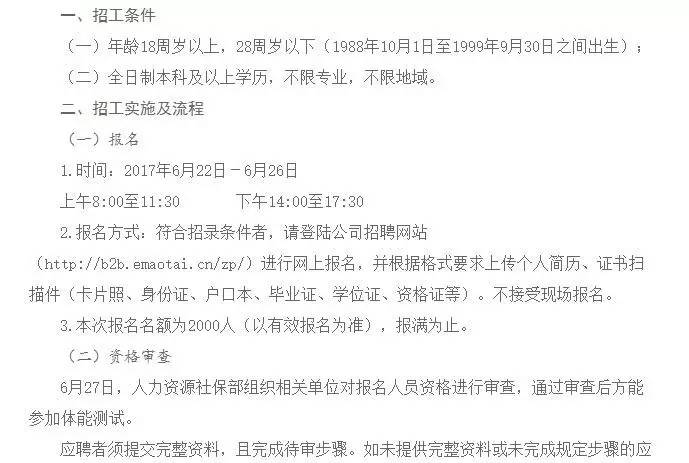 酒廠學徒工也要招本科生 每經小編(微信號:nbdnews)注意到,茅臺官網(wǎng)在2017年社會招工簡章列明了招工條件,對年齡和學歷都有嚴苛的限制。年齡18-28周歲,學歷在本科以上的要求也讓很多網(wǎng)友驚呼,自己連做一個酒廠工人都不夠格了。