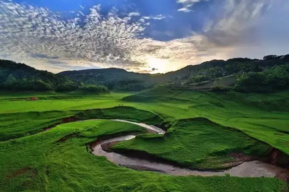 這里綠草如茵,繁花似錦,群山翠涌,曲流婉轉。 晚霞映照下的草地,幻化出靈動的光影韻律; 大自然的神來畫筆,勾勒出迷人的世外風景線… (責任編輯:admin) |