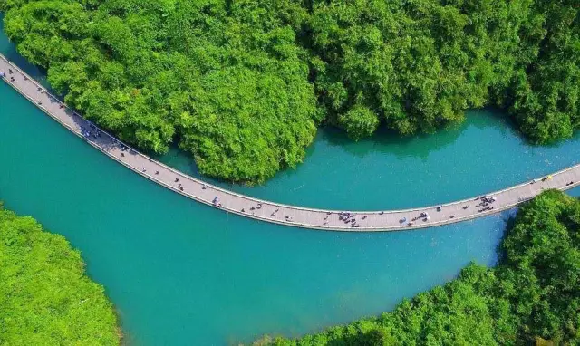獅子關水上棧道:這條漂浮在水上的棧道長約500米,順著蜿蜒的河流而建,位于恩施州宣恩縣的獅子關景區(qū)內。以往人們只能坐船游覽山水,現在可以走在這條棧道上更親密地接觸自然了。碧綠的河水、翠綠的青山,行走其間,鳥叫蟲鳴,十分愜意。