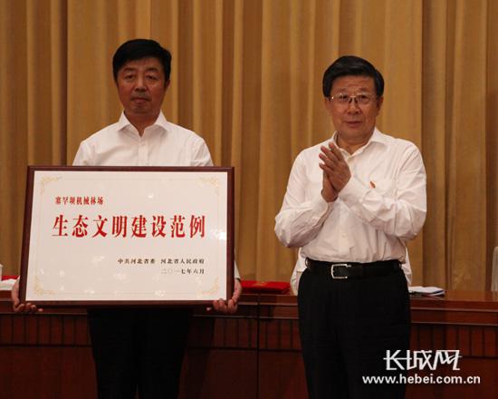 河北省委書記、省人大常委會主任趙克志向塞罕壩機械林場黨委主要負責人頒發(fā)牌匾。記者 任光陽 攝 長城網(wǎng)6月30日訊(記者 吳紹冰 賀宏偉)6月30日上午召開的河北省慶祝中國共產(chǎn)黨