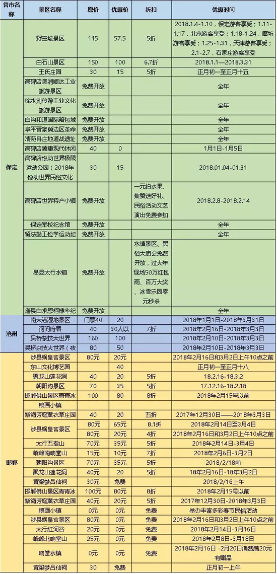 1月16日,從 樂享河北 開啟旅游新時代2018河北旅游發(fā)布活動上獲悉,2018新春旅游惠民活動河北省旅游委將推出300多項優(yōu)惠措施和節(jié)慶活動。全省100多家景區(qū)實行門票免費、打折優(yōu)惠,不